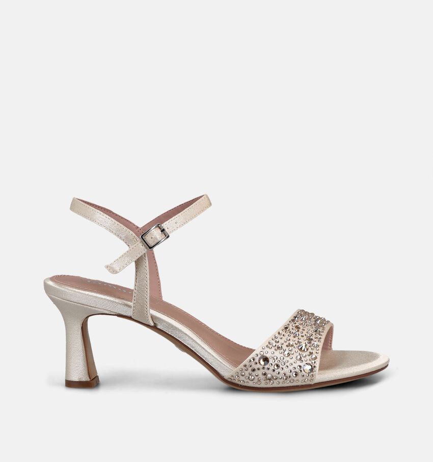 Sandalen op hak, of sandaletten, zijn de perfecte match bij elke outfit! Deze witte sandaletten van het merk Tamaris zullen ongetwijfeld een permanente plaats in je hart én je schoenenkast veroveren. De hogere hak verlengt je benen, wat zeer chic en extra vrouwelijk oogt. Dat maakt deze Tamaris sandalen ideaal om te stylen met je favoriete jurken, (jeans)broeken en rokken. Onze stylingtip: een (hand)tas in diezelfde parelmoer kleur maakt je look helemaal af! Het buitenmateriaal van deze trendy sandalen met ...