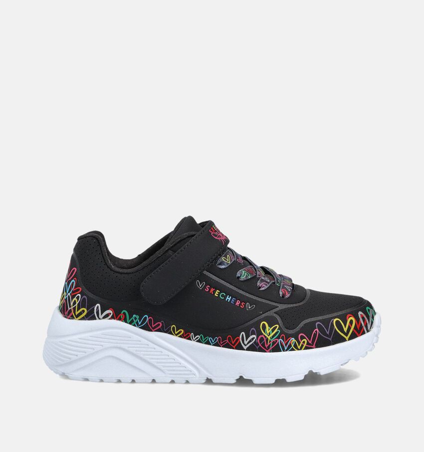 Skechers sneakers worden de nieuwe favoriete schoenen van jouw mini-me! Met deze zwarte Skechers sneakers aan de voeten, voel jij je gewoon de coolste van de school. Het trendy design van deze Skechers Uno voor kinderen is uiteraard leuk, maar wat echt opvalt aan deze zwarte Skechers voor meisjes is het comfort. Deze sneakers hebben anti-shockeigenschappen, ideaal voor de meest actieve en sportieve meisjesvoeten! De elastiek & velcrosluiting houdt ze bovendien stevig aan de voeten tijdens de zotste avonture...