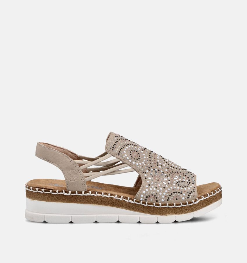 Rieker Beige Sandalen met Sleehak