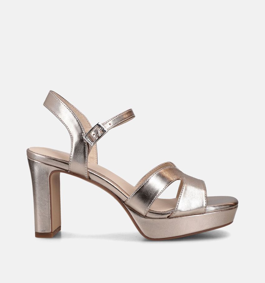Sandalen op hak, of sandaletten, zijn de perfecte match bij elke outfit! Deze gouden sandaletten van het merk Tamaris zullen ongetwijfeld een permanente plaats in je hart én je schoenenkast veroveren. De hogere hak verlengt je benen, wat zeer chic en extra vrouwelijk oogt. Dat maakt deze Tamaris sandalen ideaal om te stylen met je favoriete jurken, (jeans)broeken en rokken. Onze stylingtip: een (hand)tas in diezelfde kleur maakt je look helemaal af! Het buitenmateriaal van deze trendy sandalen met hak is kw...