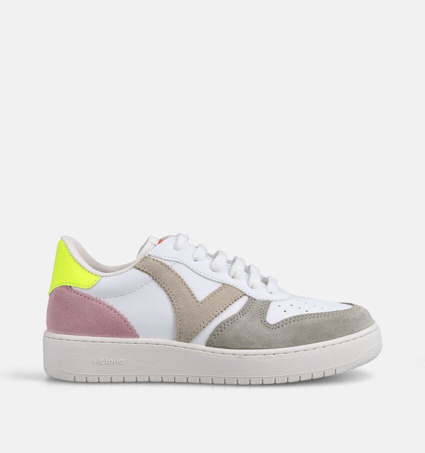 Colorblock sneakers, zoals dit exemplaar voor dames, zijn een leuke twist op klassieke sneakers. In plaats van één effen kleur over de hele sneaker, sieren op deze Victoria sneakers verschillende contrasterende kleurvlakken. Deze trend straalt fashion, creativiteit en vrolijkheid uit. Victoria heeft van deze multicoloured sneakers een echt fashion statement gemaakt, maar Victoria is comfort zeker niet uit het oog verloren. Deze sneakers voor dames hebben een uitstekende pasvorm, met goede hiel- en voetenboo...