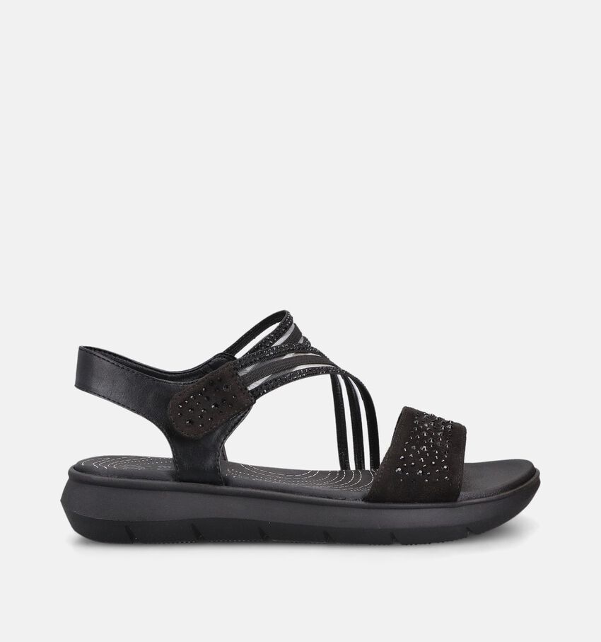 Jana Zwarte Platte Sandalen