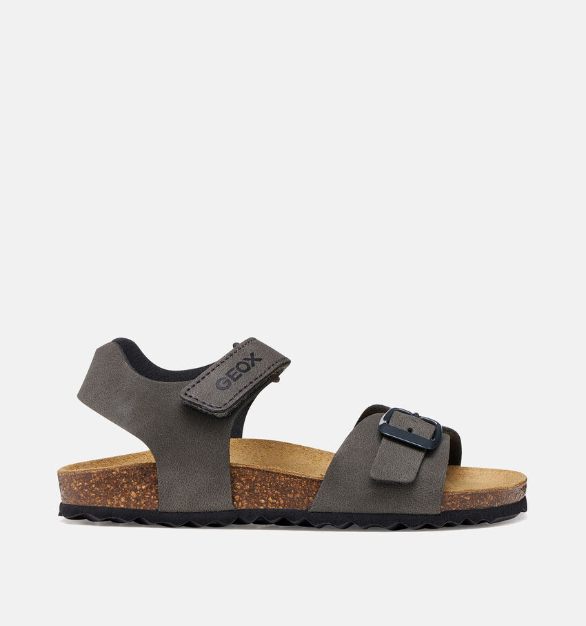 Deze coole sandalen voor jongens zien er niet alleen keileuk uit, ze hebben ook nog eens een hoog comfortlevel! Deze grijze jongenssandalen hebben de gepatenteerde Geox-zolen, waardoor zweet wordt afgevoerd via microgaatjes in de buitenzolen. Zo blijven kindervoeten de hele dag lang droog, zelfs tijdens het rennen, klimmen, spelen en springen! Door het comfort van deze ademende kindersandalen voor jongens is geen avontuur te gek meer. Je zal voelen dat de hiel van deze Geox sandalen licht verstevigd is. Dat...