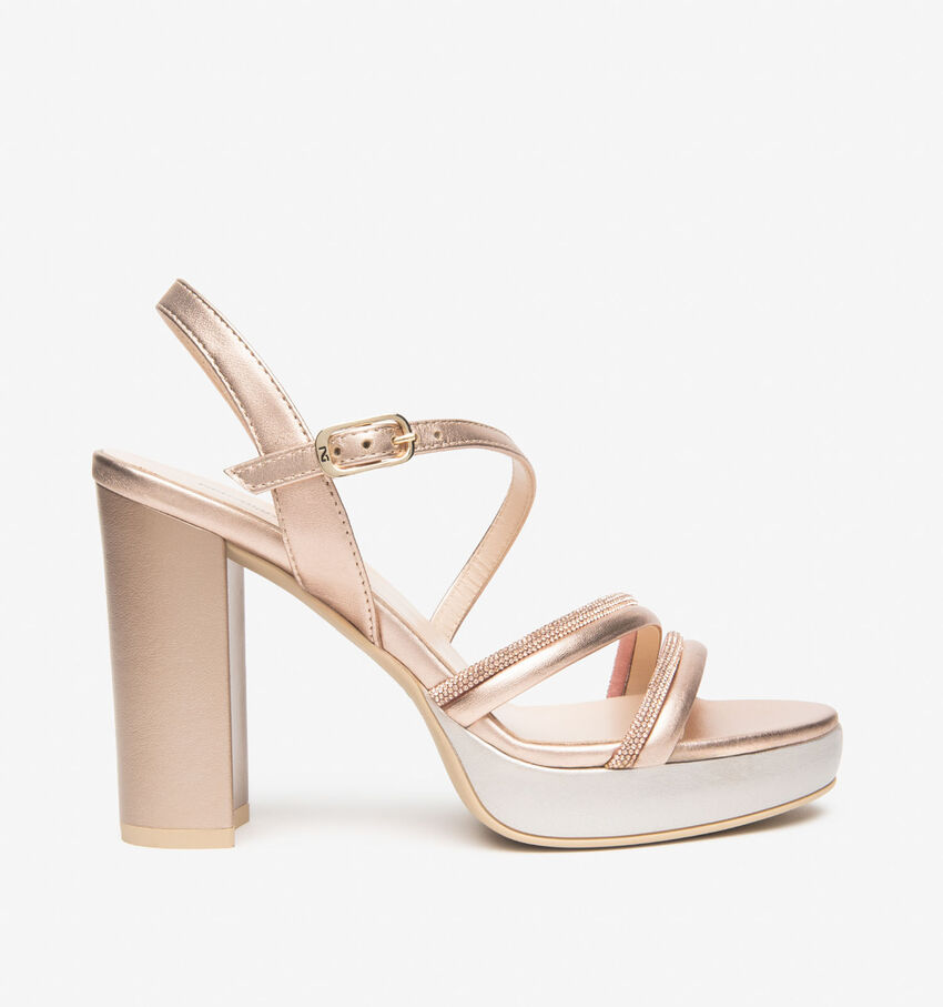 Deze gouden sandalen van Italiaans topmerk NeroGiardini zijn perfect voor jou als je zowel een trendy look als comfort belangrijk vindt! Dit prachtige exemplaar heeft een hakhoogte van Hoge Hakken (>8 cm) cm en vooraan een plateauhoogte van cm. In de zolen van deze sandalen op hak zit een subtiele demping die voor extra stapcomfort zorgt. De pasvorm van deze gouden NeroGiardini sandalen houdt bovendien rekening met het feit dat voeten tegen het einde van de dag altijd wat opzwellen, zeker als het warm is. Z...